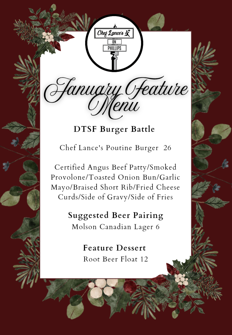 Our Feature Menu for January is available the entire month of January, in addition to our regular menu.