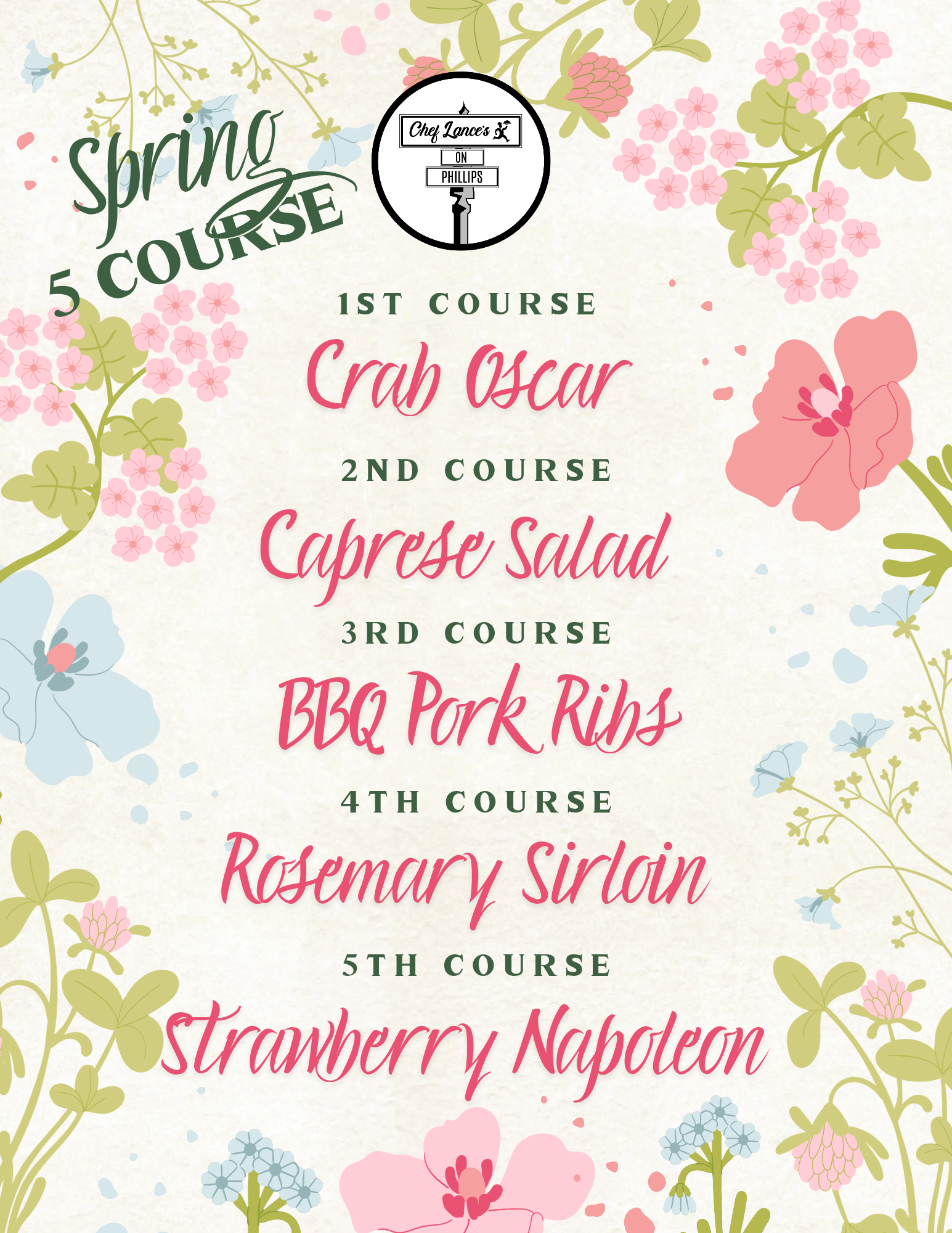 Join us on Monday, April 20th at 6pm for our Spring 5 Course Dinner. Doors open at 5:30 for pre-drinks.
